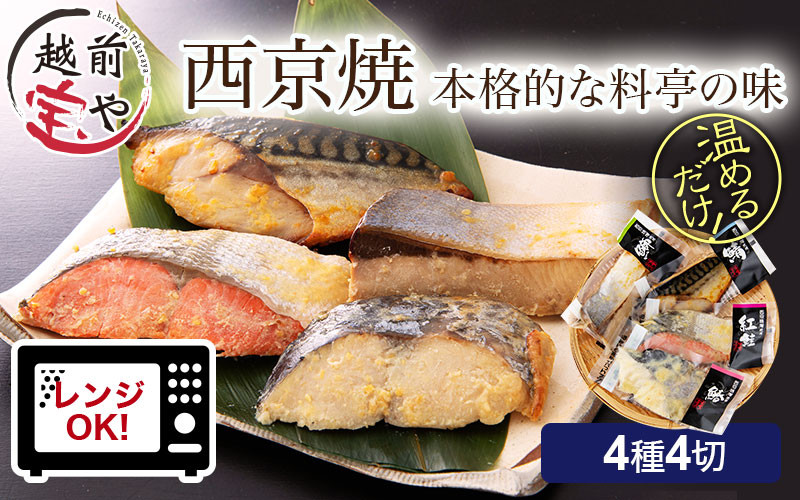 電子レンジや湯せんで温めるだけでご家庭で簡単に専門店の味が楽しめます 西京漬け 4種4切セット [A-088052] / 西京焼 西京焼き焼き魚 焼魚 レンジ 簡単 手軽 レンチン 一人暮らし 湯煎 湯せん ぶり さわら さば さけ ブリ サワラ サバ サケ 鰤 鰆 鯖 鮭