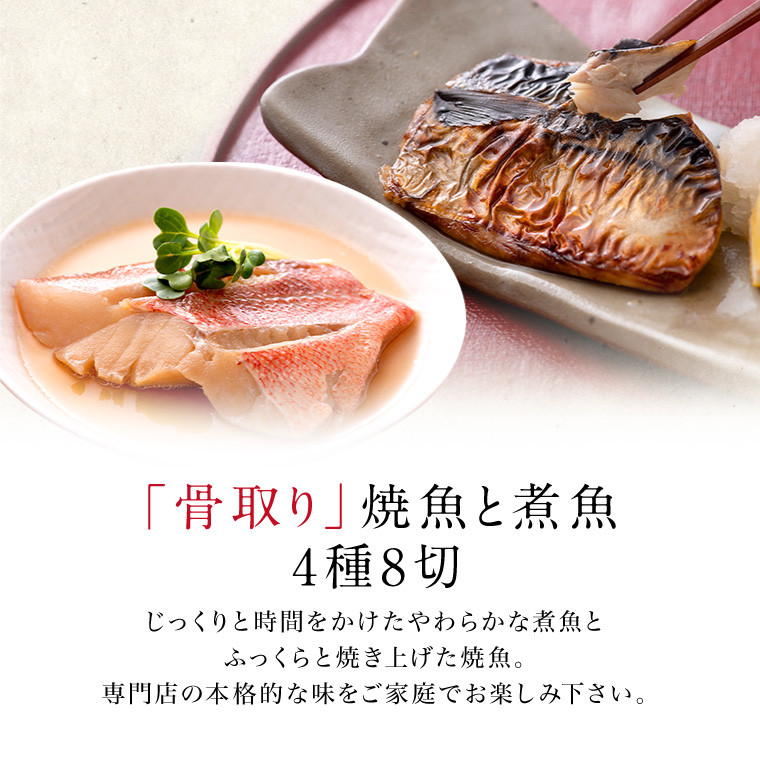 【6ヶ月連続 定期便】骨取り 煮魚・焼き魚・西京漬 4種8切 レン…