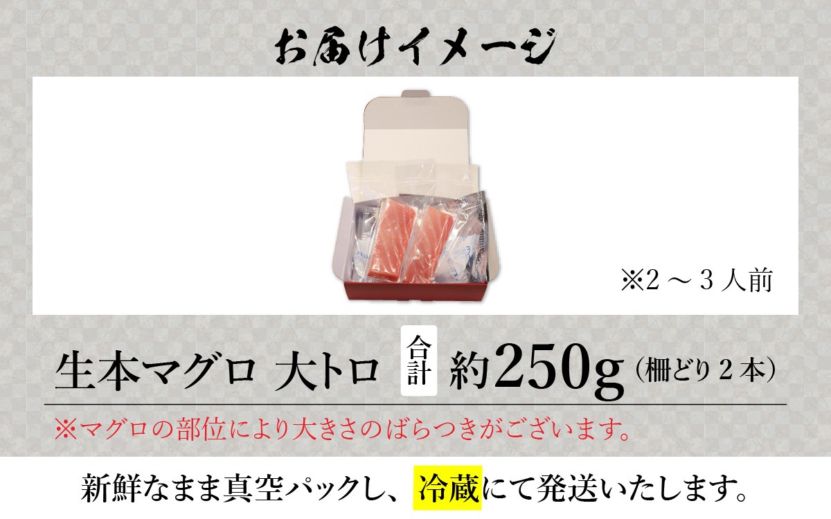 【冷蔵・指定日着可】生本マグロ大トロ 約250g 2~3人前 [A-066…