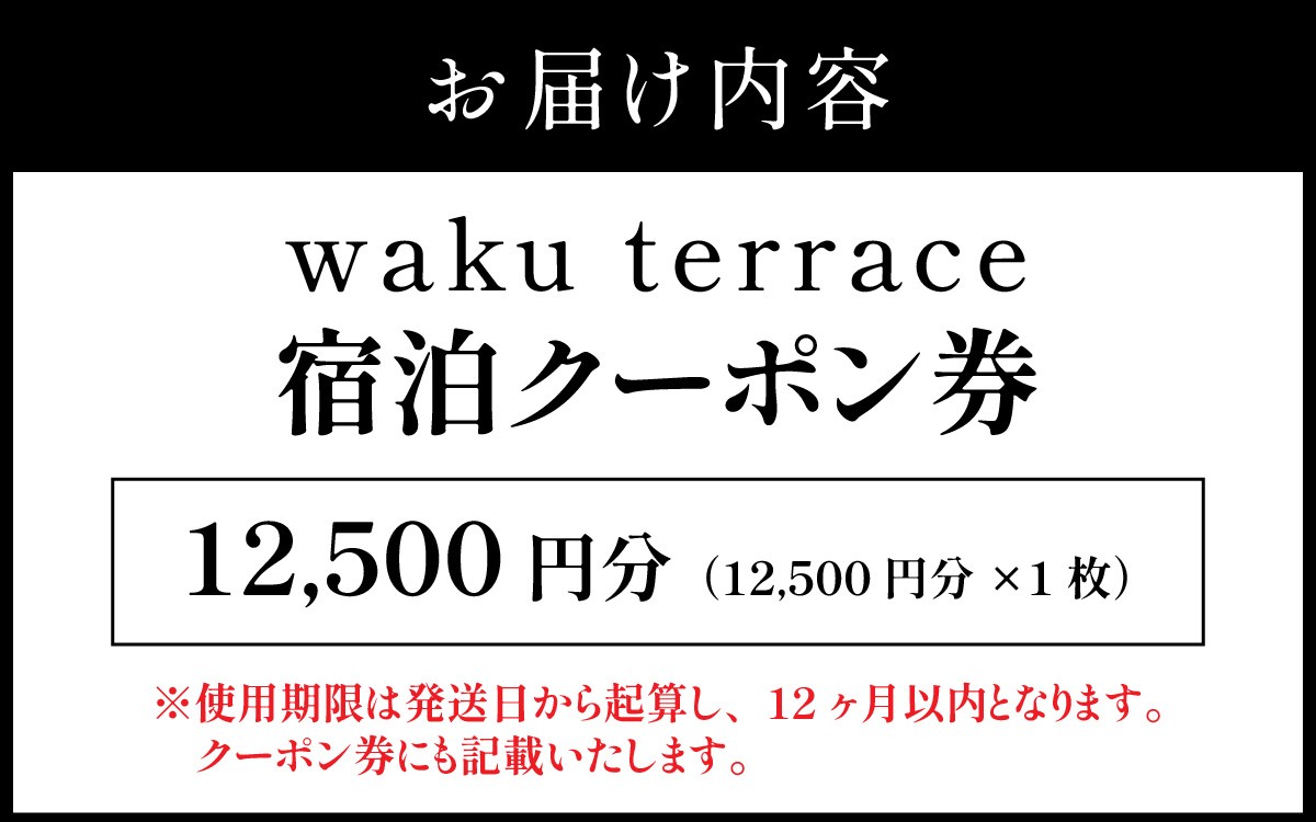 NEW waku terrace 宿泊代金にご利用いただけるクーポン券 12,500円…50,000 円 貸別荘施設「waku terrace 」でご利用いただけるクーポン券です。 - 常温便