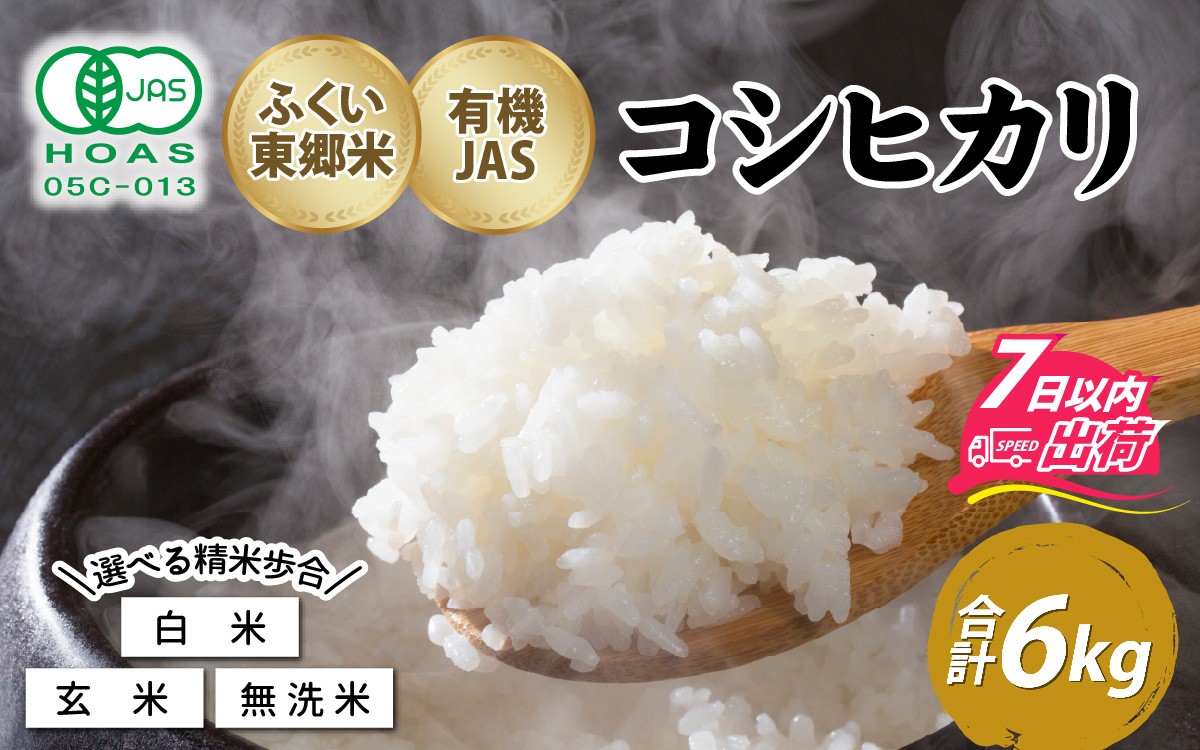 令和7年産 ふくい東郷米 有機JASコシヒカリ 6kg 選べる精米付合…