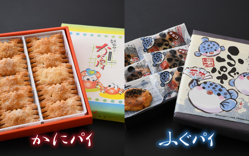 敦賀伝統銘菓の豆らくがん、かに・ふぐをイメージして作った可愛い姿パイ、