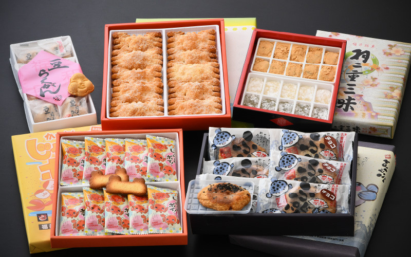 | 容量 | ■内容量 / 製造地 / 製造者 福井敦賀の銘菓いろいろセット 【1】羽二重三昧 × 20枚入り 【2】ふぐパイ × 6個入り 【3】かにパイ × 7個入り 【4】かにさんじゃんけんポイ × 10個入り 【5】豆らくがん × 8個入り 製造地:すべて敦賀市 製造者:有限会社銘菓処 笑福堂 |