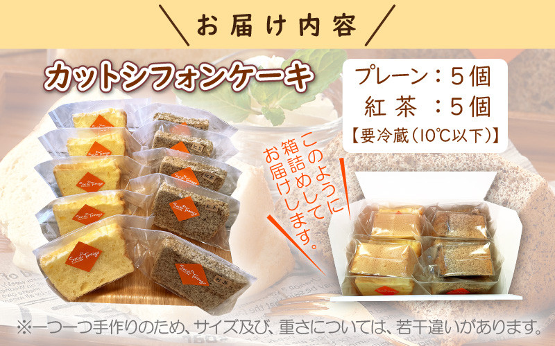 カットシフォンケーキ10個セット(プレーン5個 紅茶5個)
