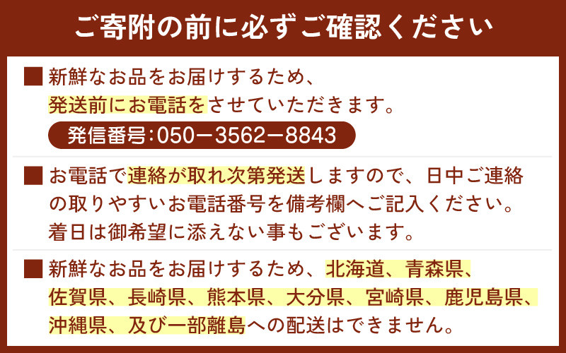 ※新鮮なお品をお届けするため、発送前にお電話をさせていただきます。(発信番号:050-3562-8843)