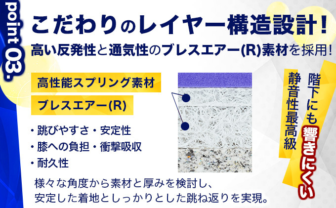 高い反発性と 通気性のブレスエアー(R)素材を採用したレイヤー構造のこだわり設計