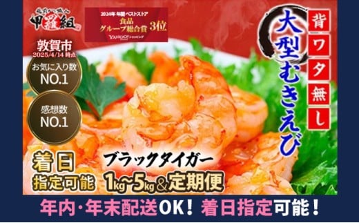 指定日可能 ・着日指定 ブラックタイガー 剥き身 1kg(解凍後85…