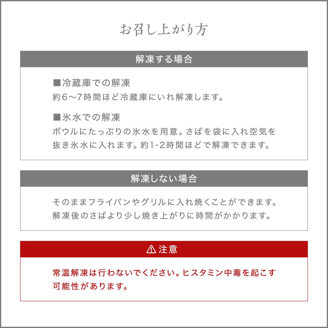 | 容量 | サバ切り身(無塩)1kg(最終加工地:敦賀市) 原材料:サバ(欧州産) |
