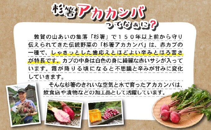 杉箸アカカンバは敦賀市の杉箸地区でおよそ150年前から栽培されている赤カブで、