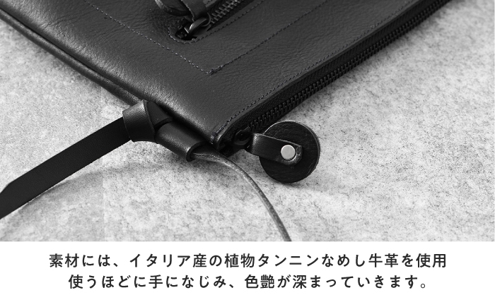 素材には、イタリア産の植物タンニンなめし牛革を使用。
