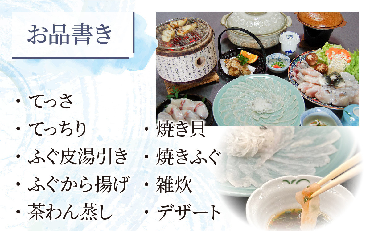 てっさ、てっちり、焼きふぐ、焼きふぐなどの若狭ふぐフルコースのプランです。