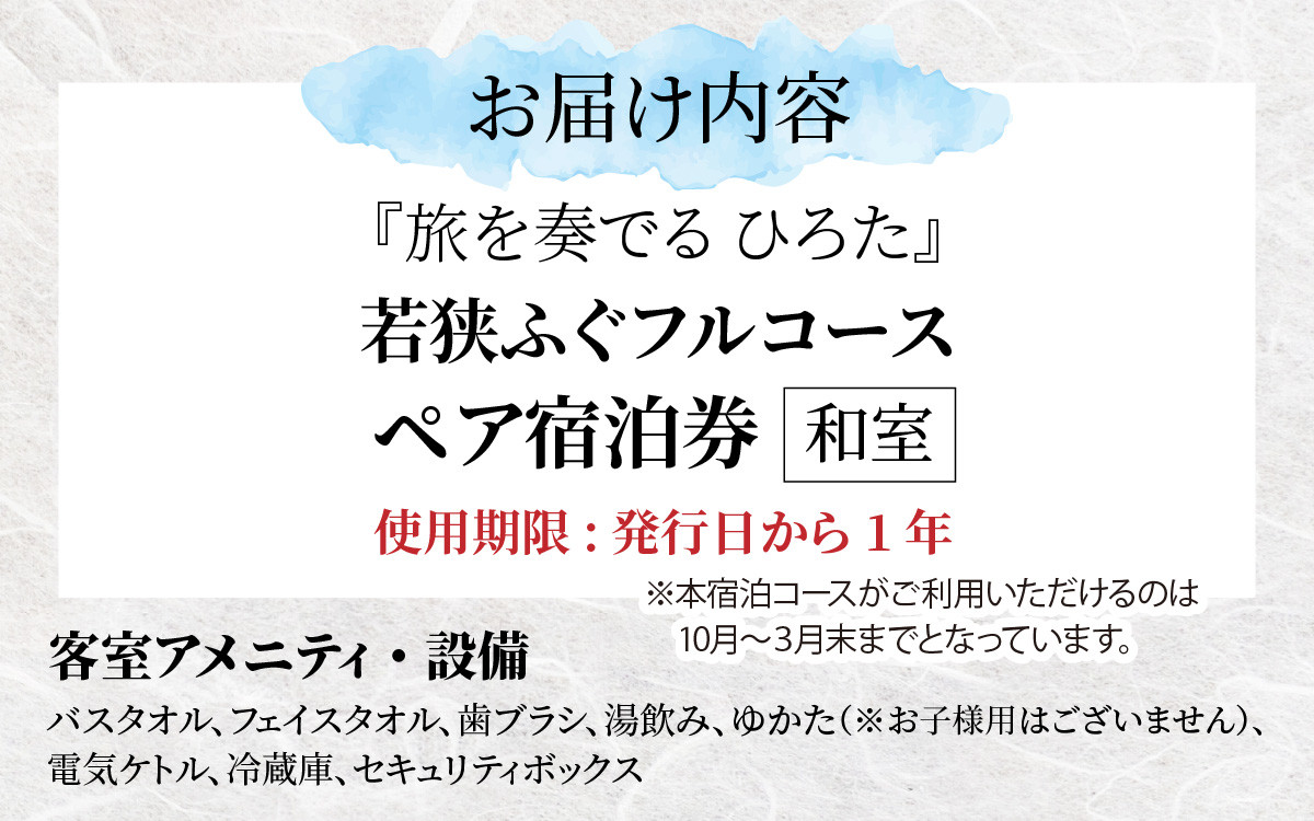 旅を奏でるひろた 若狭ふぐフルコース ペア宿泊券(和室利用…