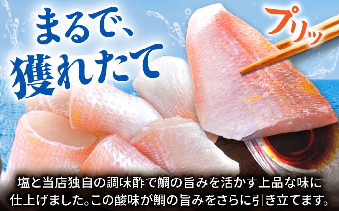 手作業で小さい蓮子鯛3枚におろし、塩と当店独自の調味酢で鯛の旨みを活かす上品なお酢味に仕上げました。