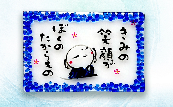 チョイスPayポイントと交換できる品 \小浜の海で作られた/たったひとつのガラスプレート 【選べるカラー】手描き地蔵のガラスプレート きみの笑顔がぼくのたからもの (桜スタンド付き) / 竹田恵子 作 ガラス 額 ガラス細工 小浜市 / ガラス工房 KEiS庵 [BFAW031][BFAW032]