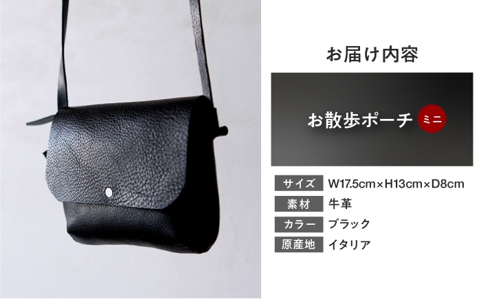 チョイスPayポイントと交換できる品 軽やかで上質なレザーショルダーバック ミニポーチ お散歩ポーチ ミニ 【ブラック】 本革 イタリアンレザー / ショルダーバッグ 軽量 牛革 背面ポケット付き 小浜市 / topiv [BFAI023]