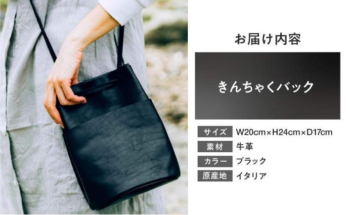 チョイスPayポイントと交換できる品 上質な革で仕立てた、トートにもなる2wayきんちゃく。 きんちゃく (巾着) バック 【ブラック】 本革 イタリアンレザー / ショルダーバッグ 軽量 牛革 前後ポケット付き 小浜市 / topiv [BFAI026]
