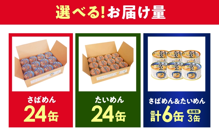 | 容量 | 下記からお選びください ・さばめん 150g×24缶 ・たいめん 150g×24缶 ・たいめん 150g×3缶 さばめん 150g×3缶 【加工地】 福井県小浜市 |