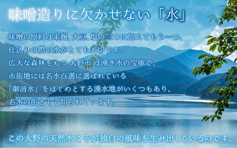 大野の名水と厳選国産素材が生み出す、甘くまろやかな米麹みその極み。