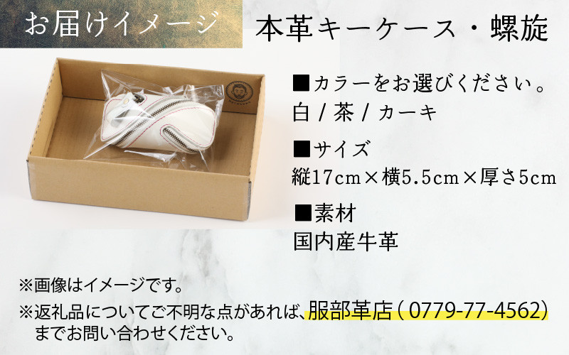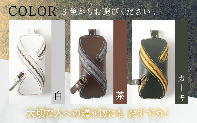 ・福井県大野市のオーダー革職人が作る至高の革製品 ・螺旋状のファスナーに目を奪われる独特なフォルム ・かさばりがちなスマートキーもすっぽり入り、ほかの鍵もしっかり収納できます。 ・使うときはベルトが伸び、使いやすさも抜群です。 ・鍵はどれも大切なもの、おしゃれなケースに収納してみてはいかがでしょうか。 ※画像はイメージです。 ※カラーを白・茶・カーキの中からお選びください。 ※「カラー:白」について、「表:白/裏:ベージュ」の革となる場合がございます。 ※返礼品についてご不明な点があれば、事業者までお問い合わせください。 事業者:服部革店(電話:0779-77-4562) [B-024002]