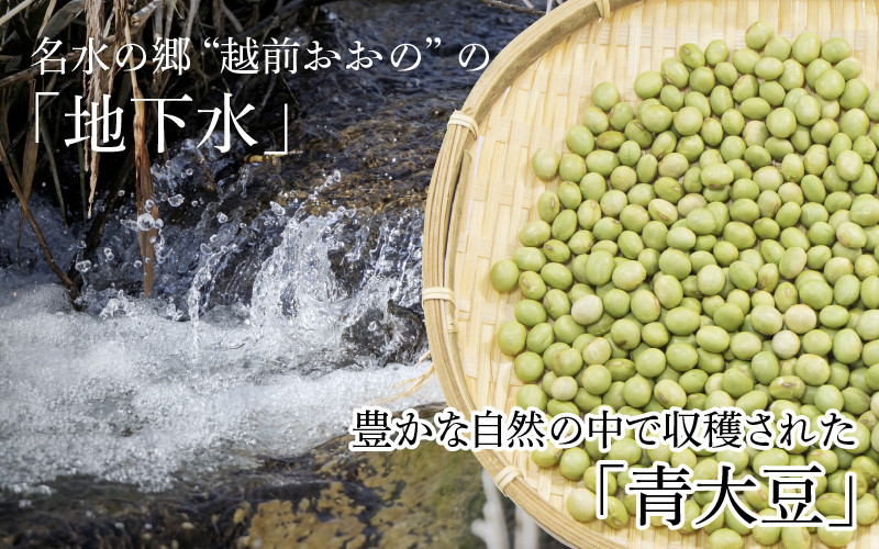 名水の郷「越前おおの」の地下水と豊かな自然の中で収穫された青大豆、そして国産小麦を原料に、