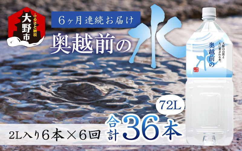 「ふくいのおいしい水」に認定 水の町からお届けする定期便 【6ヶ月連続お届け】奥越前の水 PET2L×6本 計36本