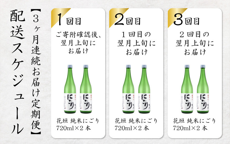 絹のように滑らかなにごりの成分が特徴 やさしい口当たりが心地よいにごり酒をお届け 【3ヶ月定期便】【全国燗酒コンテスト 3年連続金賞】日本酒 花垣 純米にごり 720ml×2本 計6本