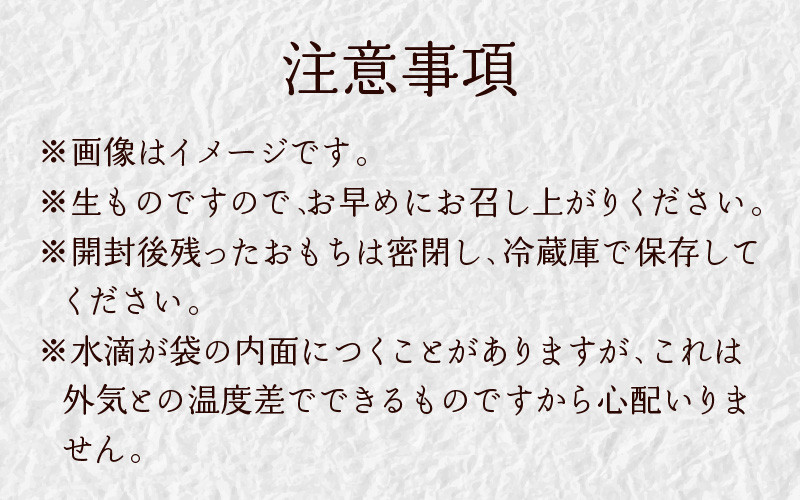 ※開封後残ったおもちは密閉し、冷蔵庫で保存してください。