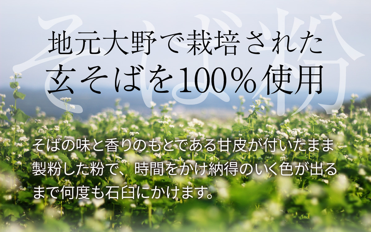 大野産玄ソバ100% 自家製粉 大野の名水で仕上げ おろしそば や かけそばに