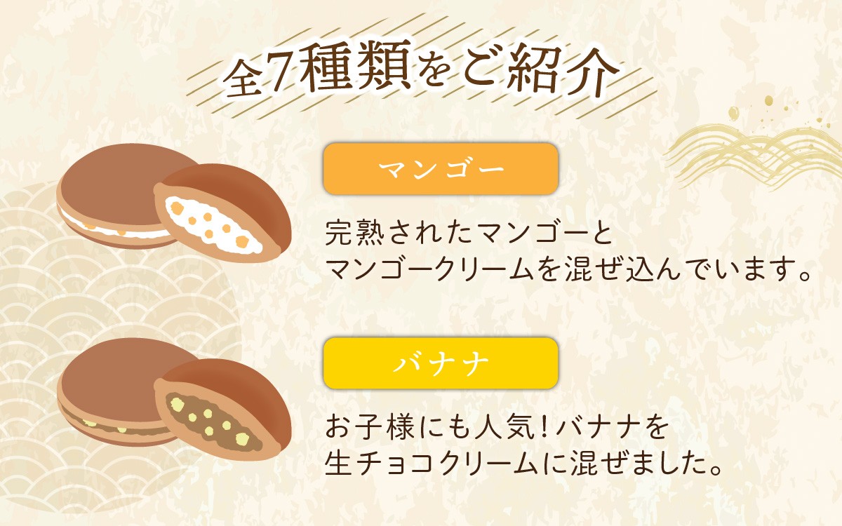 しっとりもちもち生地とクリームがベストマッチ!「旬果七彩(しゅんかしちさい)」 果実たっぷり ひろせのフルーツ生どら焼き「フルーツ生どら焼き食べ比べセット7個入り」どら焼き 和菓子 個包装 スイーツ お菓子 クリーム 甘味 甘党 デザート おやつ 食べ比べ