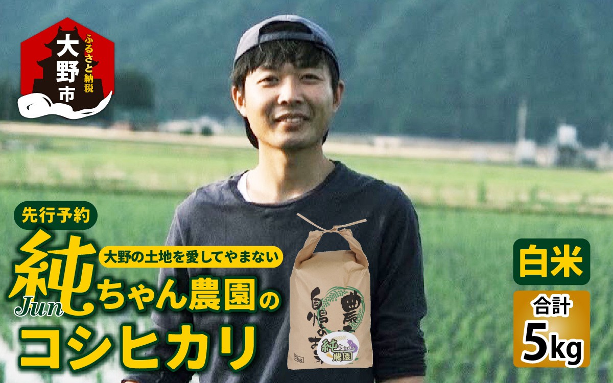 越前大野のお米は、「名水・豊かな土壌・昼夜の寒暖差」で、美味しいお米が育ちます。 【先行予約】【令和8年産 新米】純ちゃん農園のコシヒカリ白米5kg【2027年1月より順次発送】【農家直送】