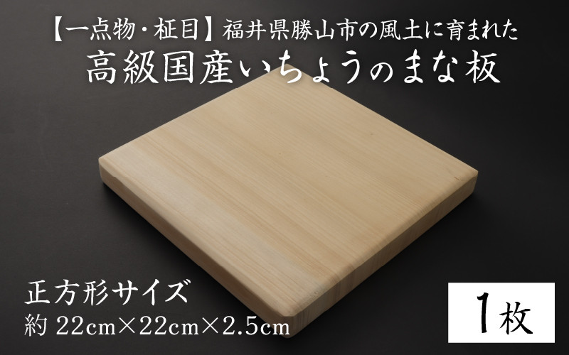 丁寧に作り上げられた一点物!めずらしい柾目のいちょうのまな板です。 【一点物・柾目】恐竜王国福井県勝山市の風土に育まれた 日本製高級国産いちょうのまな板(正方形) [B-026007]