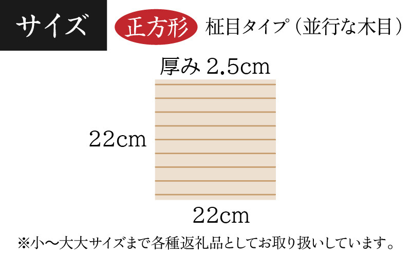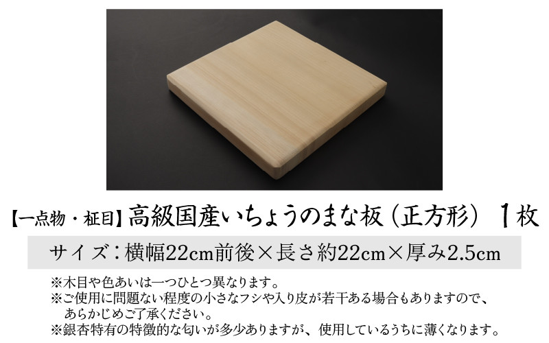 国産いちょうのまな板(正方形)(横幅22cm前後×長さ約22cm×厚み2.5cm)