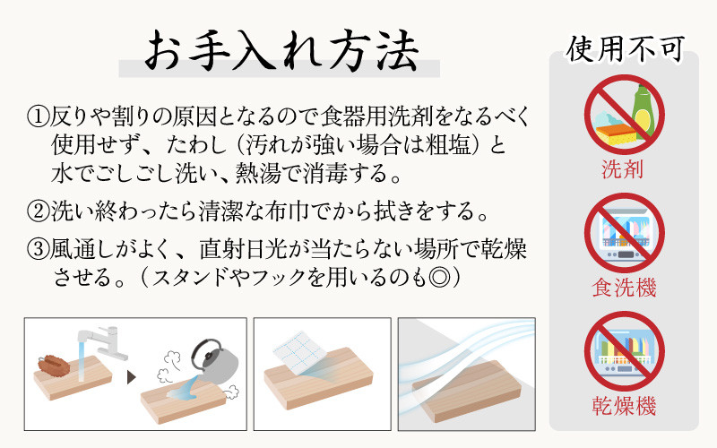 ※汚れが気になる場合は粗塩でこすり、上記のように濡れた布巾でふきとるか、熱湯をかけ流してください。