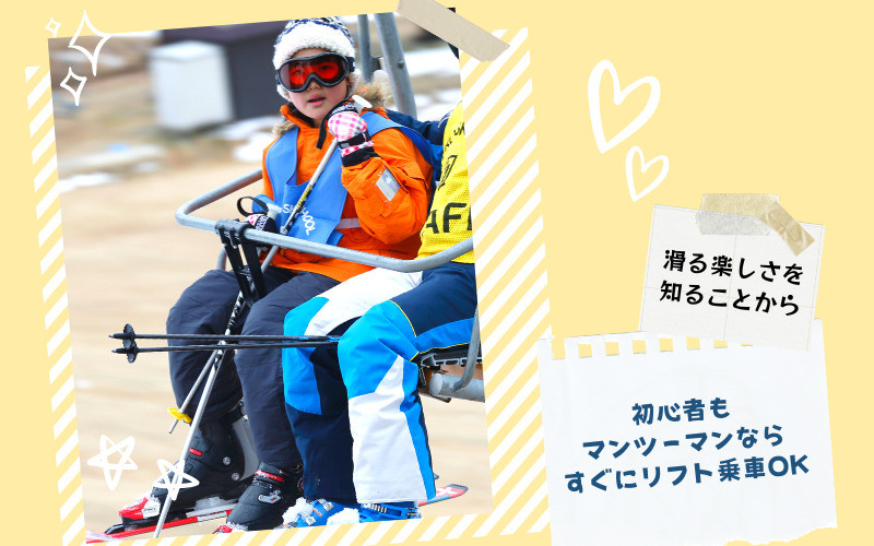 1対1なら初心者もレッスン開始10分後にはリフトに乗ってゲレンデで滑れます。