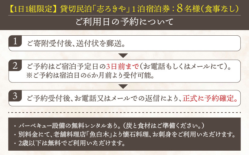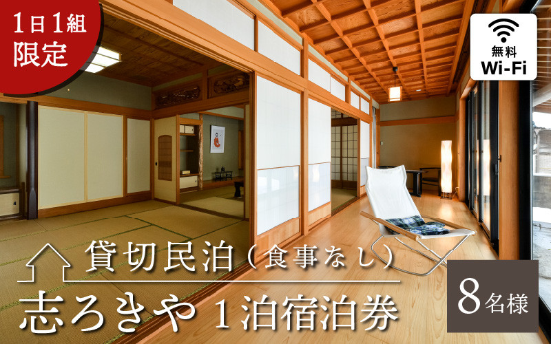 山、海、川 自然豊かな福井でのんびりくつろぐ 贅沢な時間を 一日一組限定 貸切民泊 志ろきや 1泊 宿泊券(8名様・食事なし) [O-066008]