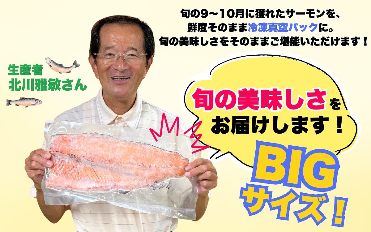 本品は勝山やまのサーモン半身を旬の9月~10月に加工冷凍保存した商品です。