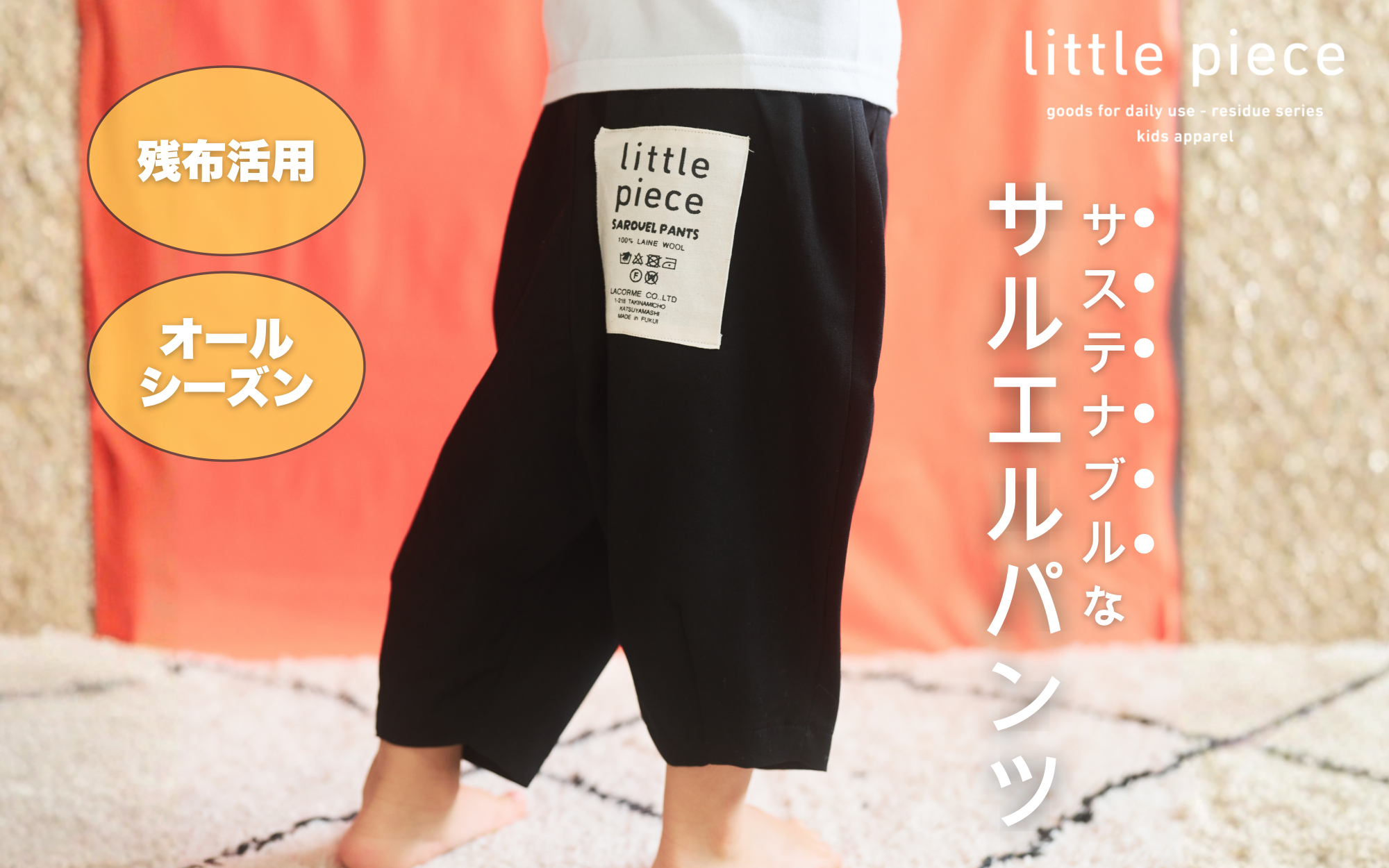 繊維産地である勝山の地で残った生地をを活用したサスティナブルな子供サルエルパンツ 子供のファッションを応援 おしゃれな子供サルエルパンツ 110cm[A-089002_1]