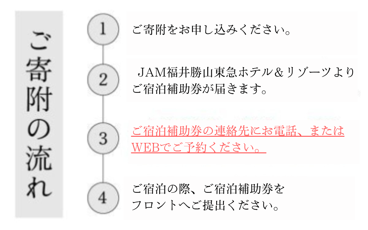 ※ご寄付お申込受付後、JAM福井勝山東急ホテル&リゾーツよりご宿泊補助券をお送りいたします。