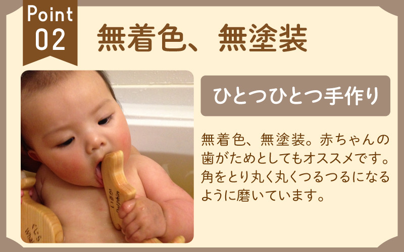 無着色、無塗装なので赤ちゃんの歯がためとしてもオススメです。
