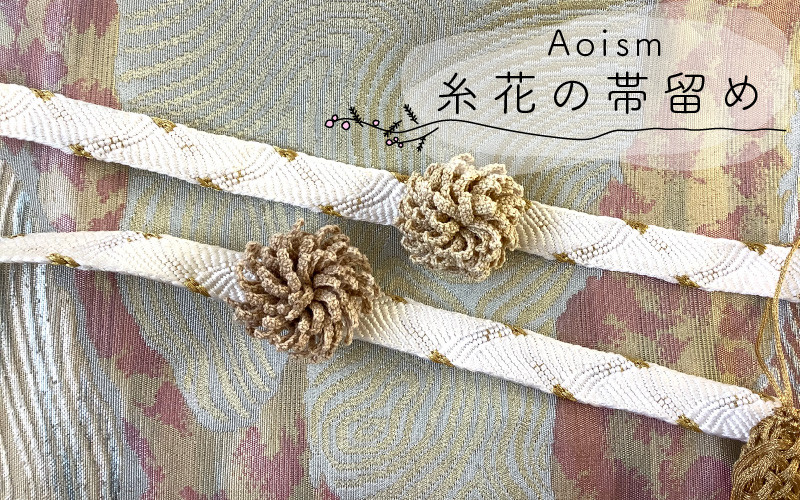 チョイス限定 四季折々の植物で草木染めした糸で織り成す花の和風でやさしい色合いの帯留め 「Aoism」糸花の帯留め[C-04101]