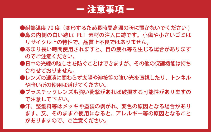 ●プラスチックレンズも強い衝撃があれば破損する可能性がありますので注意して下さい。