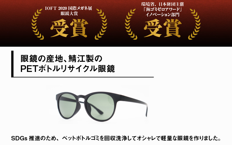 IOFT2020国際メガネ展眼鏡大賞受賞 SDGs推進のため開発したサングラス PET ボトルリサイクルサングラス MBK-G15 [A-09306]