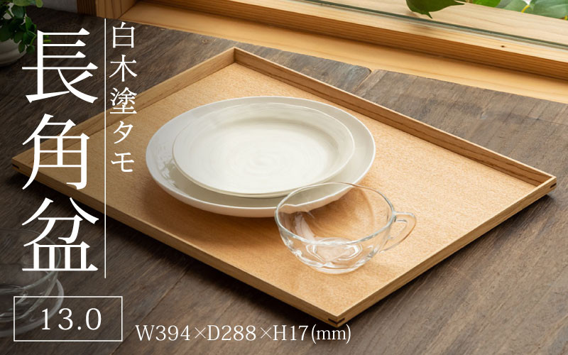 白木塗のトレー 長角シリーズ 長角盆 13.0サイズ