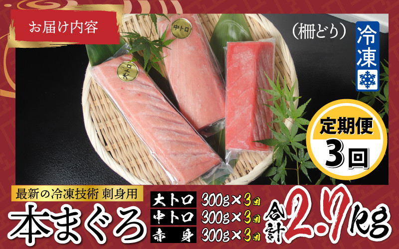 本マグロの3つの部位を味わえる絶品セットの定期便! 【定期便】【3ヶ月連続お届け】 刺身用!本マグロ堪能セット(柵どり) 計 900g × 3回 【最新の冷凍技術】[J-11002]