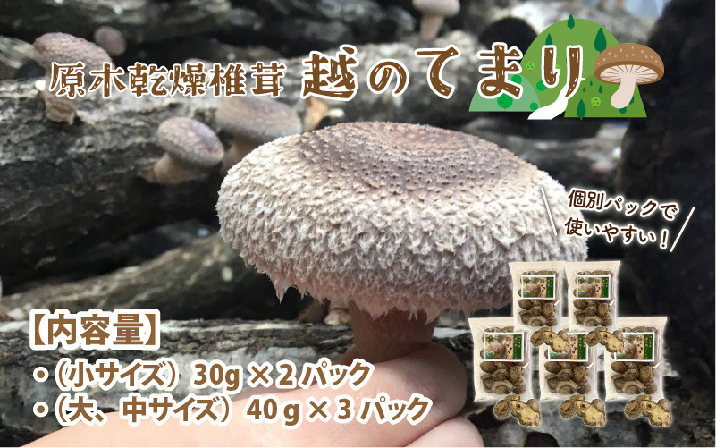 一度食べたらもう他の椎茸は食べられない!これぞ本物の原木椎茸! 鯖江市産 原木乾燥椎茸「越のてまり」 (大・中サイズ)3パック &(小サイズ)2パック 計5パック [B-05001]