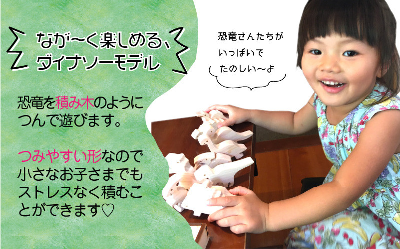 がおがお恐竜つみつみ ~ 全部で10頭!~ 福井県産ひのきの木の…