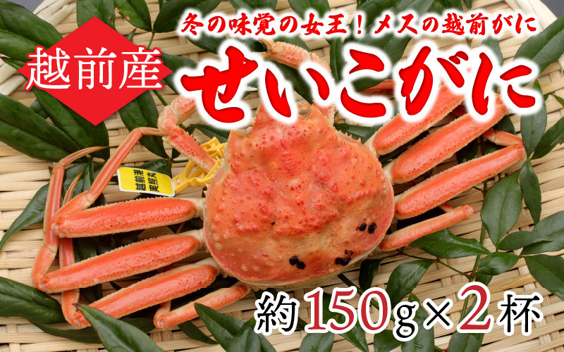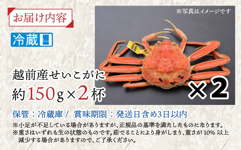 たった2か月しか食べられない、貴重な旬の味覚「せいこがに」をお届けいたします! 【11月3日までの特別価格!】【11月中旬以降順次発送予定】北陸の冬の味覚の王者!越前がに(メス)「せいこがに」150g前後 × 2杯 [A-11022] / かに カニ ギフト グルメ 冷蔵 福井県