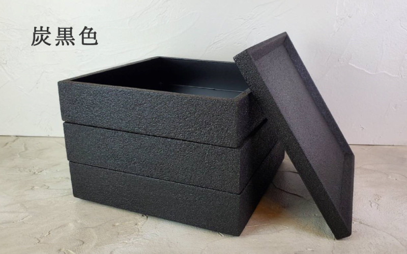 【ざらざら越前漆器】三段重箱(中)炭黒色 くろめ工房 [I-0920…