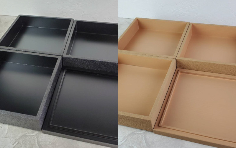 マットな色合いでザラザラとした陶器のような手触りの全く新しい越前漆器
