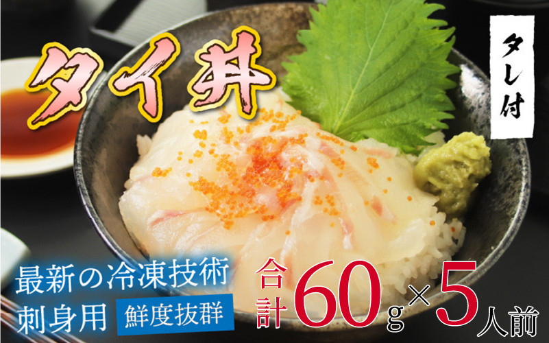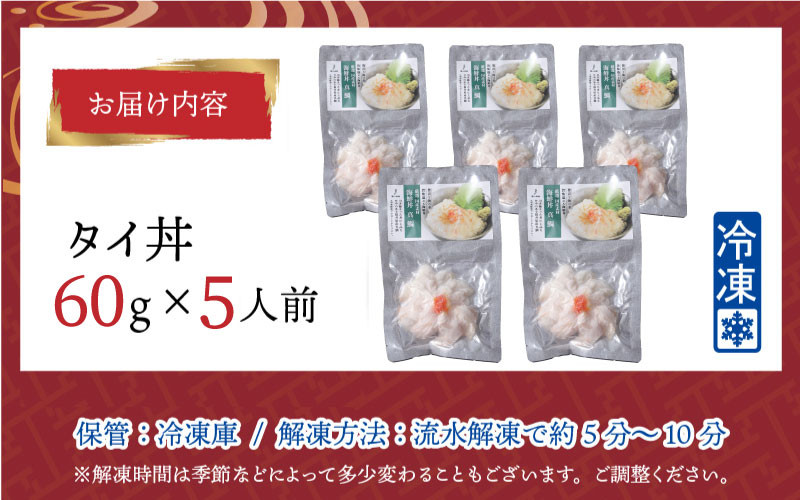 使い切りサイズ!1人前ずつ真空パックした海鮮丼の具 タイ 【刺身用】海鮮丼の具 タイ 60g(タレ付)× 5人前 【最新の冷凍技術】[B-11019]
